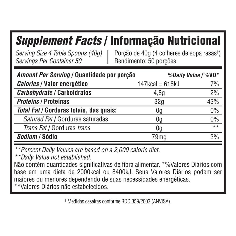 100% Whey Protein Isolada Bodybuilders Chocolate 2kg 100% Whey Protein Isolada Bodybuilders Morango 2kg Whey Protein Isolado é um suplemento alimentar formulado apenas com proteína isolada do soro do leite, a famosa whey protein isolada (WPI). Com o maior indice de pureza, e alto teor de BCAA e outros aminoácidos destaca-se no mercado como um dos itens mais vendidos por causa dos seus inumeros benefícios à saúde. A WHEY ISOLADA FOODS é perfeita para quem segue a dieta a risca e por ser uma whey protein isolado se encaixa em vários objetivos e tipos de esportes por auxiliar tando no emagrecimento quanto no aumento de massa muscular. Benefícios:
