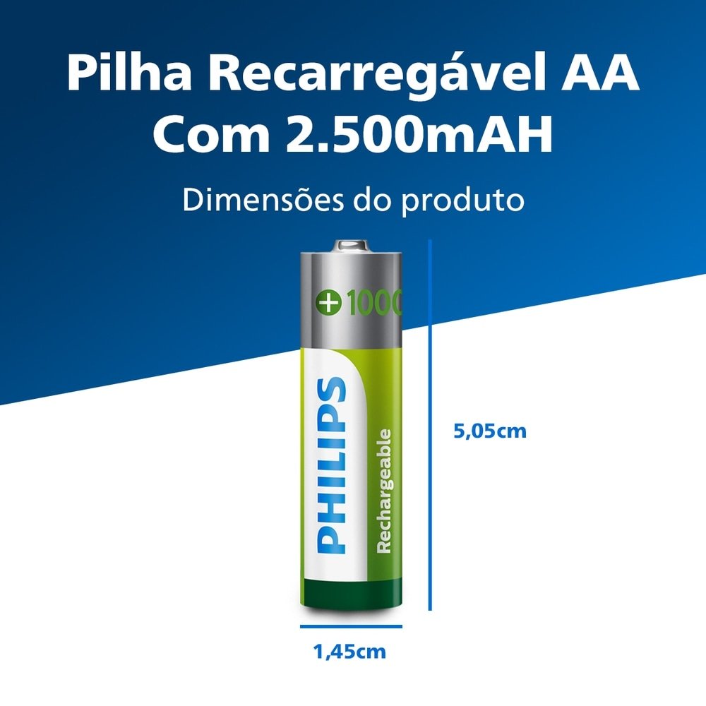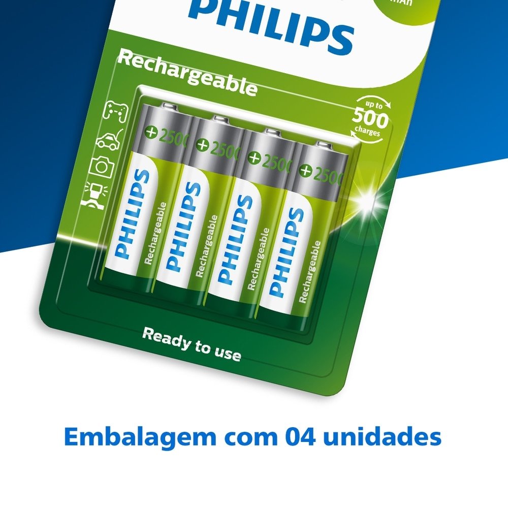 Pilha Philips AA Recarregável R6B4RTU25/59 1.2V - Embalagem com 4 Unidades