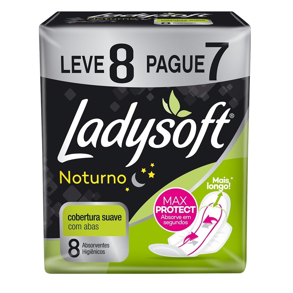 Absorvente Ladysoft Noturno Suave com Abas Embalagem com 8 Unidades