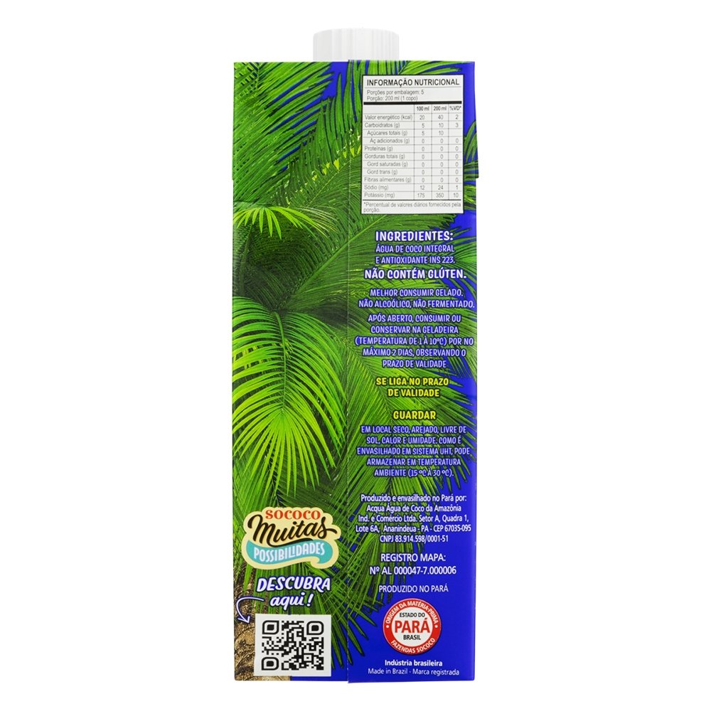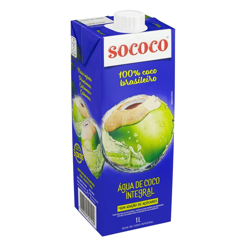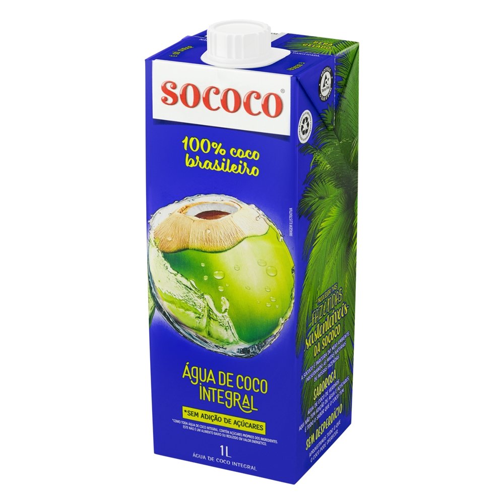 Água de Coco Sococo Tetra Pack 1 Litro - Embalagem com 12 Unidades