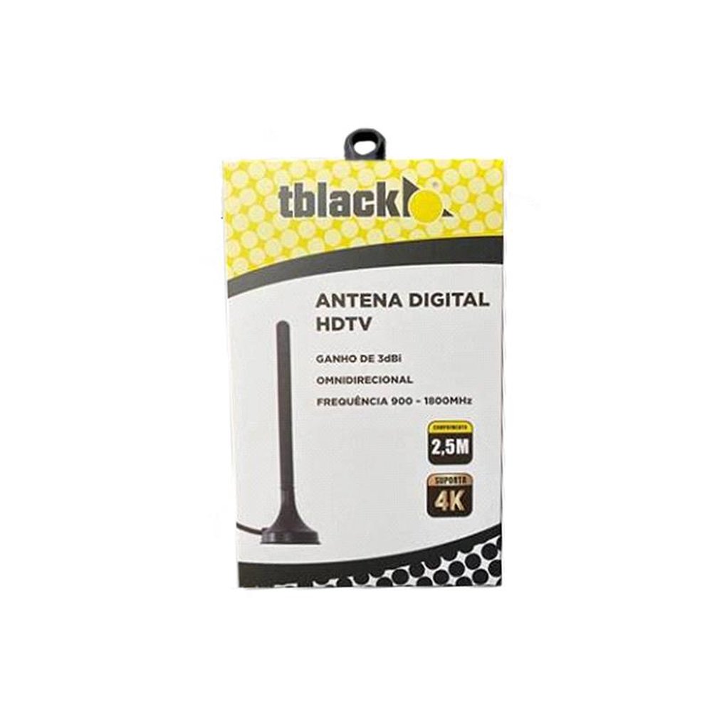 A Antena Digital TV HDTV Tblack é utilizada em televisores que possuam conversor digital integrado ou externo com entrada "F" coaxial, em que recebe sinais digitais de canais abertos. Substitui a necessidade de antena externa, com frequência de 900 - 1800MHz e ganho de 3dBi. Tecnologia omnidirecional que suporta a resolução 4K. Com cabo de 2,5 metros e sua base imantada, permite uma melhor fixação e posicionamento. Seu design minimalista é ideal para ambientes internos. Cor: Preto