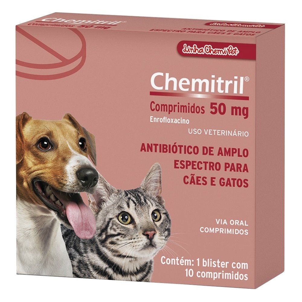 Antibiótico Chemitril 50mg - Embalagem com 10 Comprimidos