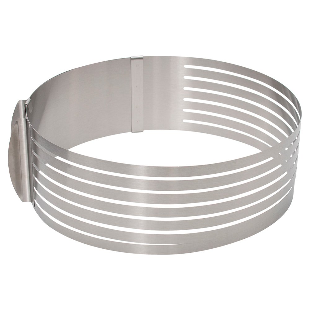 Quer fazer incríveis receitas de bolo e seis camadas com o Aro fatiador Você pode obter cortes perfeitos com o Aro de fatiar bolos. Este cortador de 6 camadas oferece a flexibilidade de fazer cortes, para assim rechear cada camada. O cortador de bolo ajustável funciona de maneira bem simples, basta ajustar o aro de acordo com o tamanho do bolo, prendendo e colocando o bolo em seu interior, após posicionar o bolo, basta passar uma faca entre os espaços do aro para fatiar o bolo de forma rápida e precisa. Com uma superfície lisa e polida, o Aro Fatiador Para Bolo pode ser facilmente enxaguado com água limpa diretamente. Projetado para profissionais ou padeiros familiares, ele pode ajudar a colocar bolos de maneira uniforme e fazer bolos requintados. Corte bolos assados, pães, biscoitos, chocolates, etc. Eles são fáceis de soltar sem deformação. Nosso Aro Fatiador de Bolo Mimo Style pode ajudá-lo a cortá-los facilmente em até 6 camadas. Medidas: 23 à 28,5 cm de Diâmetro (Ajustável) e 8,5 cm de altura.