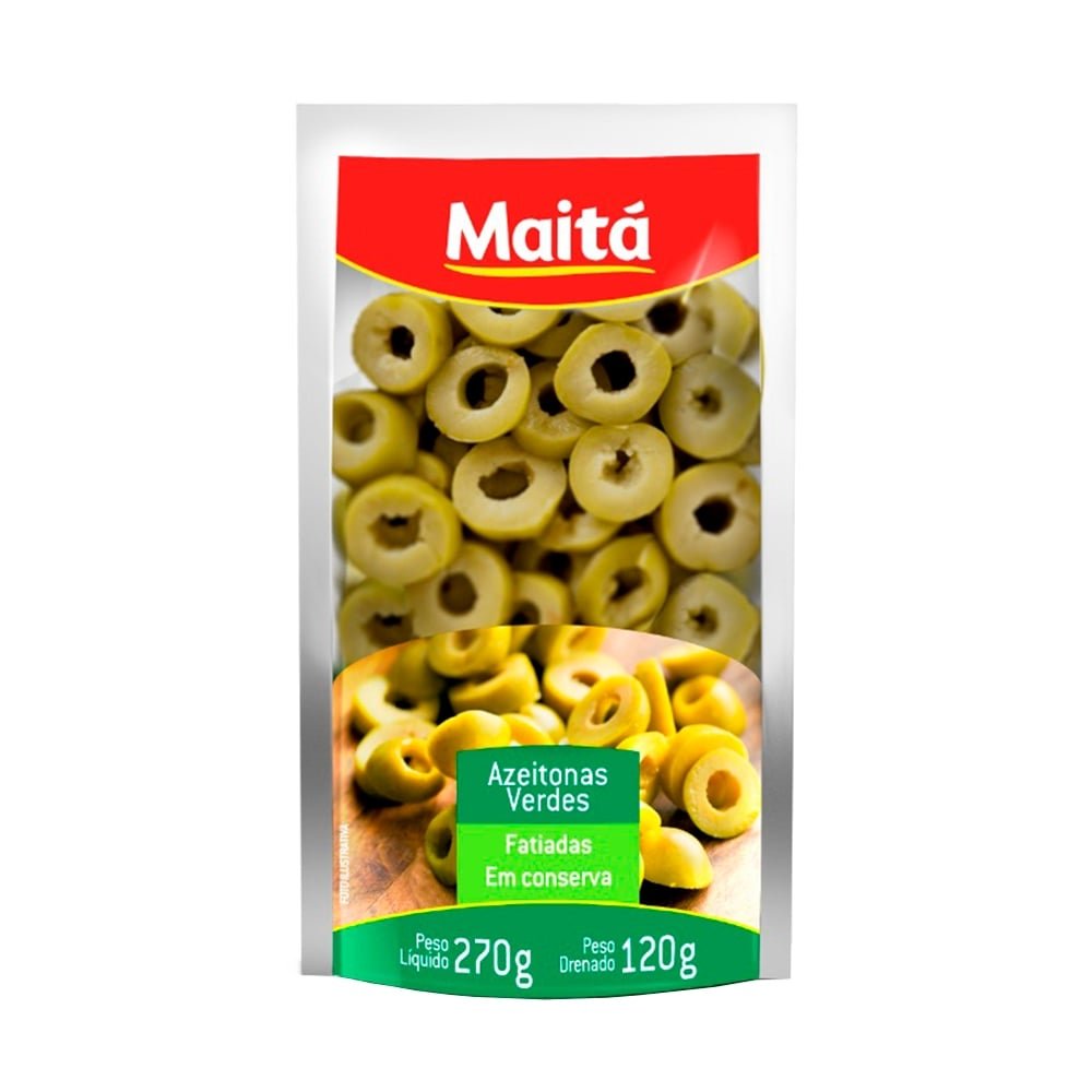 Azeitona Maitá Verde Fatiada Sachê 120g - Embalagem c/ 18 unidades