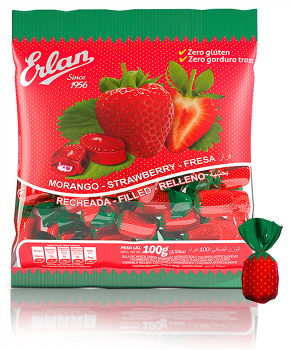Bala Dura Recheada Cestinha De Morango Erlan 100G