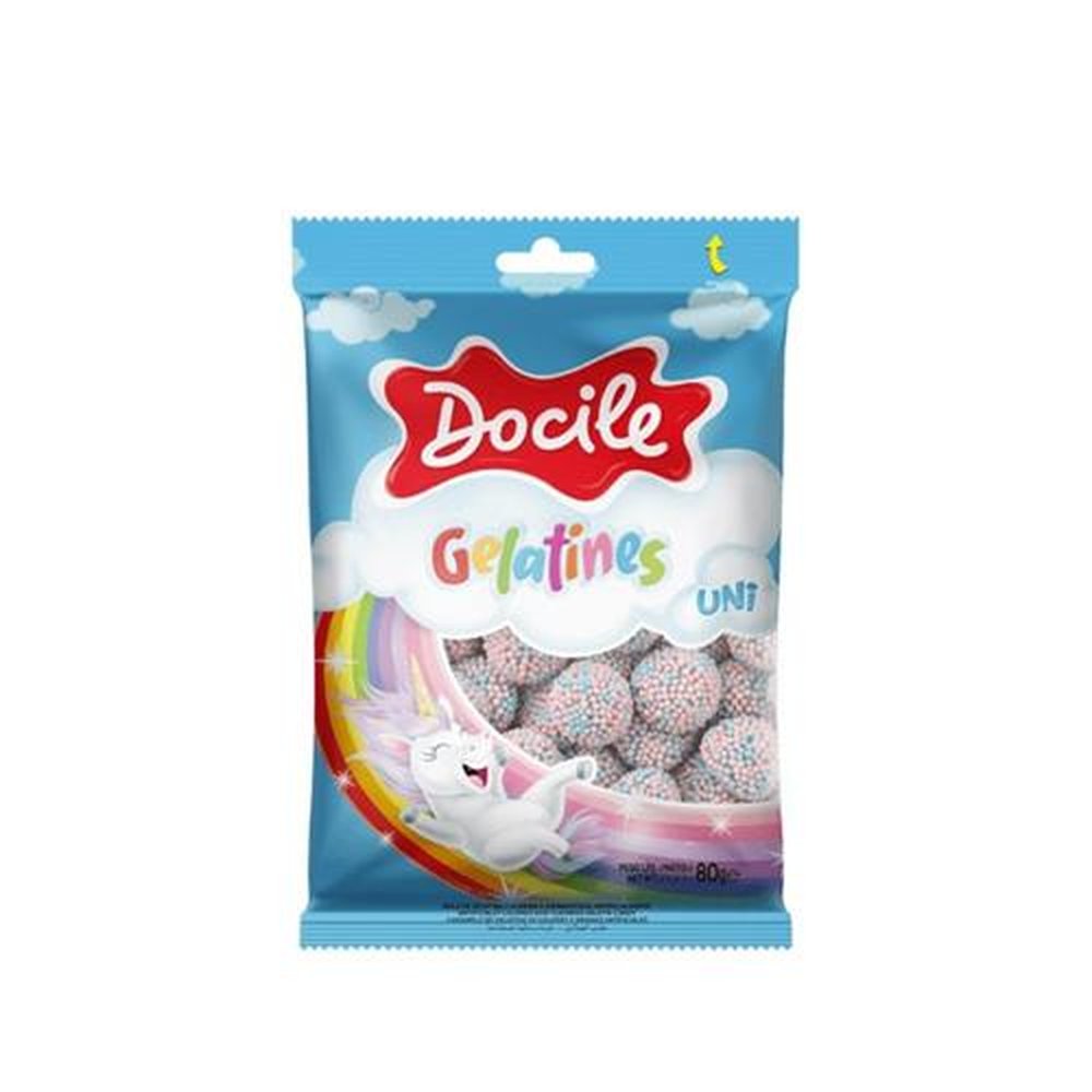Encantadoras balas de gelatina sabor uva levemente azedinho, coberto com miçangas unicornizadas! Embalagens de 80g.