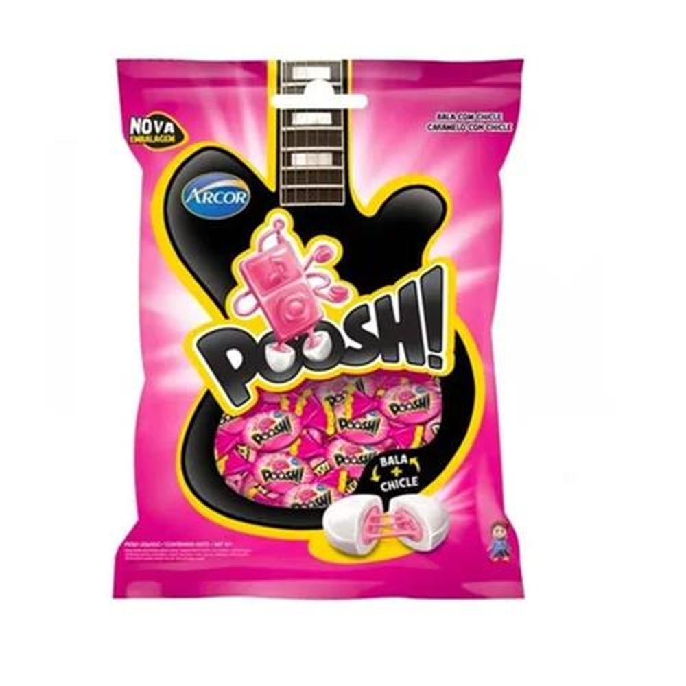 Pacote de 500g de bala poosh sabor tutti frutti.