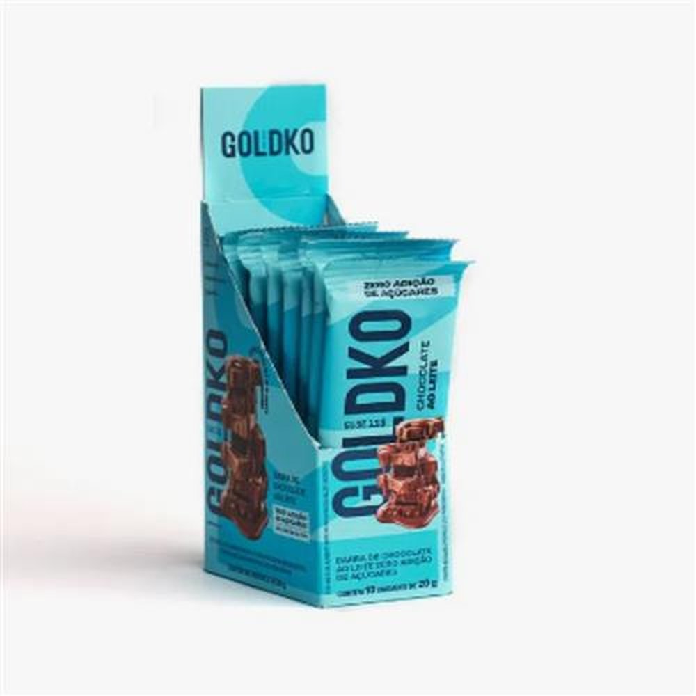 Barra De Chocolate Ao Leite Goldko Zero Açúcar Display Com 10 Unidades De 20g