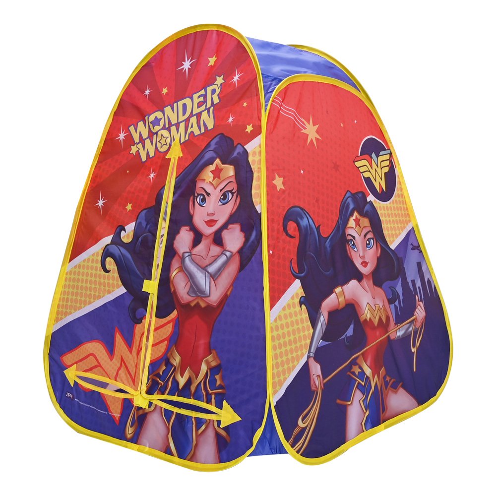 Zippy Toys Barraca Portátil Mulher Maravilha, Fácil de Montar, Multicor, Telhado Com Ventilação, Leve Para Transportar, Para Crianças Acima de 3 Anos, Sistema de Montagem Pop up, Solte a Imaginação