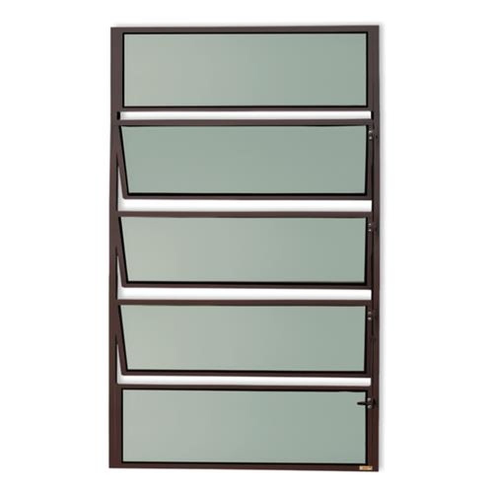Janela Basculante de Alumínio Linha Master Pintura Eletrostática Corten 2 Folhas Fixas e 3 Folhas Móveis Vidro Mini Boreal 4mm Altura 100 Cm Largura 80 Cm Requadro 2,3 Cm Garantia de 5 anos contra defeitos de fabricação