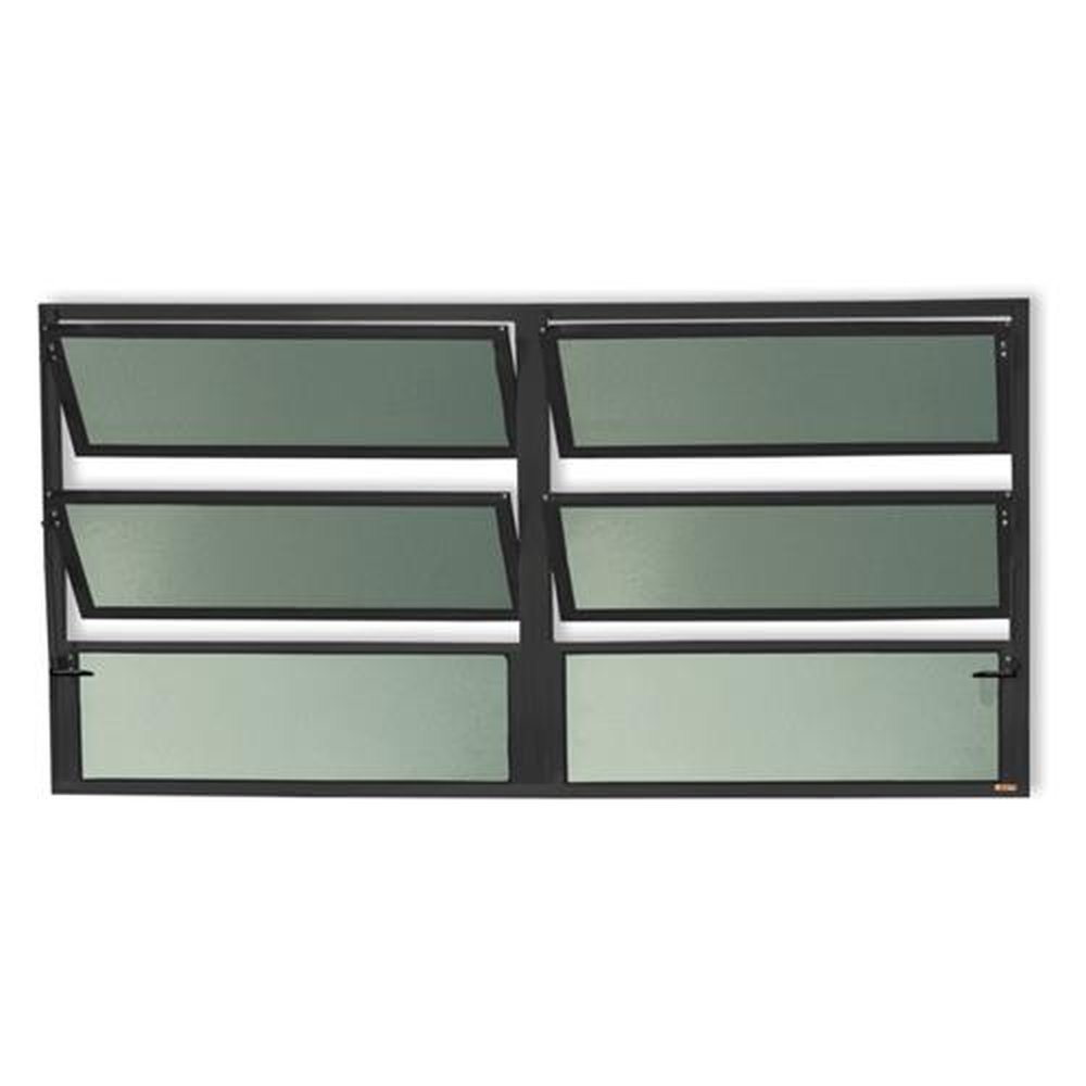 Janela Basculante 2 Secões de Alumínio Linha Plus Pintura Eletrostática Preta 2 Folhas Fixas e 4 Folhas Móveis Vidro Mini Boreal 4mm Altura 60 Cm Largura 200 Cm Requadro 2,5 Cm Garantia de 5 anos contra defeitos de fabricação