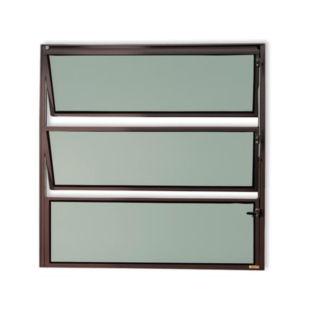 Janela Basculante de Alumínio Linha Master Pintura Eletrostática Corten 1 Folha Fixa e 2 Folhas Móveis Vidro Mini Boreal 4mm Altura 60 Cm Largura 60 Cm Requadro 2,3 Cm Garantia de 5 anos contra defeitos de fabricação