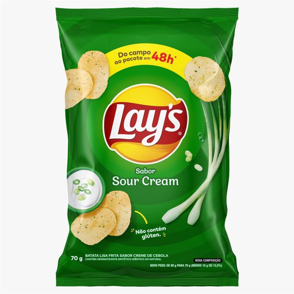Pacote de batata lays sour cream 70g pepsico.