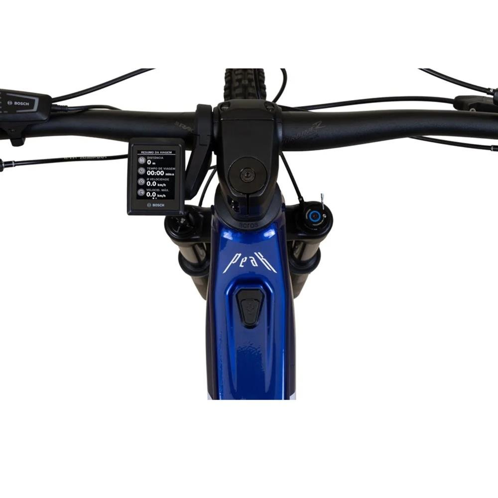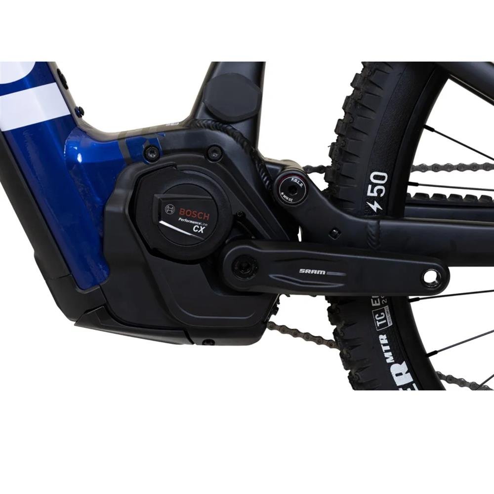 É a escolha ideal para quem exige tecnologia, conforto e confiabilidade em cada pedalada. Destaques do Produto ¿¿ Motor Bosch Performance CX G4 ¿ 250W / 85Nm: força e eficiência para subidas e terrenos técnicos. ¿¿ Bateria Bosch PowerTube 750Wh ¿ 36V: longa autonomia e recarga rápida. ¿¿ Display Bosch Kiox 300: informações detalhadas com conectividade inteligente. ¿¿¿¿¿ Suspensão RockShox dianteira e traseira: conforto e controle mesmo em trilhas desafiadoras. ¿¿ Freios hidráulicos SRAM DB8 com rotores de 203mm: potência e segurança nas frenagens. ¿¿ Transmissão SRAM NX Eagle 12V: trocas suaves e precisas em qualquer terreno. ¿¿ Rodas Vzan Overland 29¿ Tubeless Ready com cubos Novatec: durabilidade e aderência superior. ¿¿ Canote retrátil e selim Royal Cyclo SRX: conforto e ajuste rápido para diferentes estilos de pedal. Especificações Técnicas QUADRO E SUSPENSÃO Quadro: Alumínio tratado 7005, com suporte de freio a disco post mount e cabeçote tapered Suspensão dianteira: RockShox Psylo Silver ¿ curso de 160mm, Boost Amortecedor traseiro (Shock): RockShox Deluxe Select ¿ 210x55mm SISTEMA ELÉTRICO Motor: Bosch Performance CX G4 ¿ 250W Torque máximo: 85Nm Bateria: Bosch PowerTube 750Wh ¿ 36V Display: Bosch Kiox 300 Velocidade máxima assistida: até 32 km/h (limitada conforme norma) TRANSMISSÃO Trocadores: SRAM NX ¿ 12V Pedivela: SRAM FC-51000 ¿ 170mm Câmbio traseiro: SRAM NX ¿ 12V Cassete: SRAM Eagle PG1230 ¿ 12V (11-50 dentes) Movimento central: Integrado ao motor Bosch Performance CX G4 FREIOS Tipo: Hidráulico Modelo: SRAM DB8 Rotor: 203mm RODAS E PNEUS Aros: Vzan Overland R29 ¿ 32 furos, Tubeless Ready Cubos: Novatec ¿ 32 furos, Boost Raios: Inox preto Pneus: Goodyear Wrangler ¿ 29x2.6 (dianteiro) / 29x2.4 (traseiro) COMPONENTES Guidão: Race Face Alumínio ¿ 35x800mm Suporte de Guidão: JD ¿ 50x35mm Canote: Retrátil ¿ 34.9x390mm Selim: Royal Cyclo SRX com alívio de pressão Movimento de direção: Acros Integrado Tapered Tamanho M