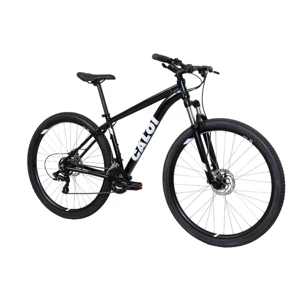 Bicicleta Caloi SMU 17 TGR 29v21 - Preto 2024 Código: 005277.19007 A Caloi SMU 17 TGR é a escolha ideal para quem busca uma bicicleta robusta, confortável e versátil para trilhas leves, passeios e treinos. Equipada com aro 29, 21 marchas e freio a disco hidráulico, ela oferece ótimo desempenho e segurança em diferentes terrenos. Destaques do Produto Quadro em alumínio 6061 leve e resistente, com gancheira removível. Suspensão dianteira Caloi com 100 mm de curso e trava hidráulica manual, garantindo mais controle e conforto. Freios a disco hidráulicos Promax Solve com rotores de 160 mm para maior potência e segurança nas frenagens. Transmissão Shimano 21 velocidades (3x7), ideal para subidas e retas, com passadores Shimano Altus. Aros Vzan Strike Pro aro 29 de parede dupla, que oferecem mais resistência e durabilidade. Pneus Vee Rubber Pro MT100 (29x2.20), com ótimo grip em trilhas e estabilidade no asfalto. Especificações Técnicas Quadro: Alumínio 6061 conformado, gancheira removível, ponteiras forjadas para freio a disco Garfo/Suspensão: Caloi, curso de 100 mm, trava hidráulica manual Aros: Vzan Strike Pro, aro 29, parede dupla, 32 furos Cubos: Alumínio 32F QR Raios: Galvanizados Pneus: Vee Rubber Pro MT100 ¿ 29x2.20 Pedal: Freestyle MC-04 9/16 Pedivela: Shimano TY-301 (42/34/24T) ¿ TP 170mm / TM e TG 175mm Movimento Central: Feimin B908 2NL Corrente: KMC Z7 Cassete/Roda livre: Shunfeng, 7 velocidades (14-34D) Câmbio Traseiro: Shimano RD-TY300 7V Câmbio Dianteiro: Shimano TY300 ou TY500 Passadores: Shimano Altus 3x7V Guidão: Alumínio 31.8 x 720 mm Mesa/Suporte de Guidão: Alumínio 31.8 x 75 mm Manoplas: Velo Ergonômica 135 mm Movimento de Direção: Feimin FP-H812PL semi-integrado Freios: Hidráulicos Promax Solve ¿ rotores 160 mm Manetes de Freio: Alumínio Selim: DDK D5311 Canote: Alumínio 27.2 x 400 mm Capacidade e Garantia Peso máximo suportado: 100 kg Para usuários acima de 100 kg recomenda-se reforço em alguns componentes (como aros) em Serviço Autorizado Caloi, a fim de evitar danos indesejáveis. Garantia: conforme fabricante