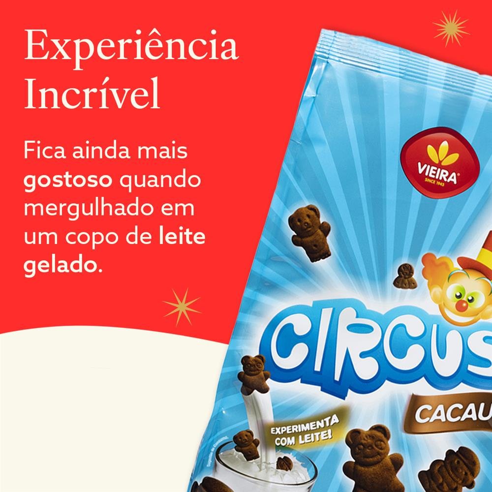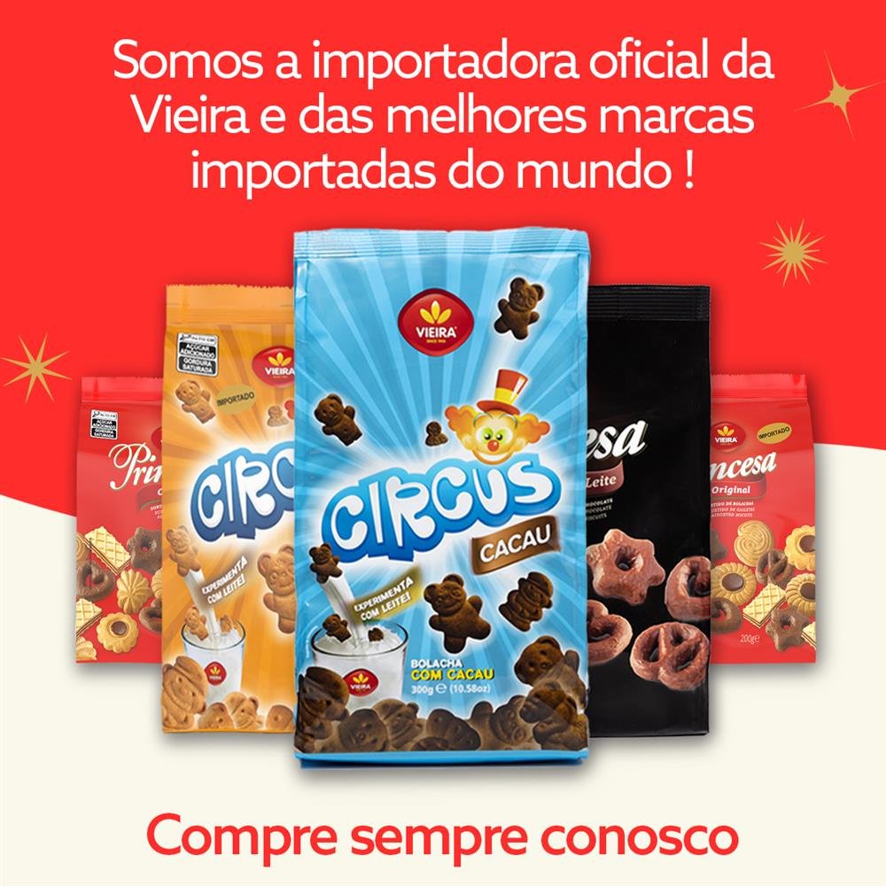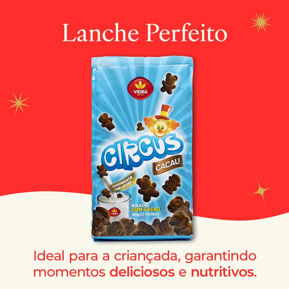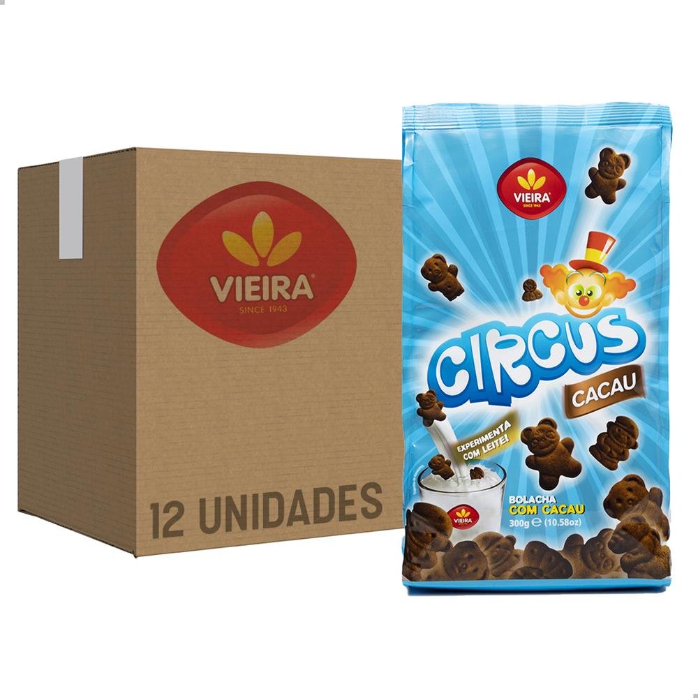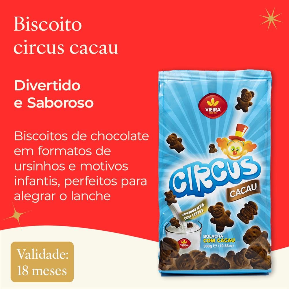 Deleite-se com o sabor indulgente do Biscoito Circus Cacau Vieira. Com 12 pacotes de 300g, cada biscoito é uma explosão de cacau, criando uma experiência de sabor que satisfaz os desejos por chocolate.