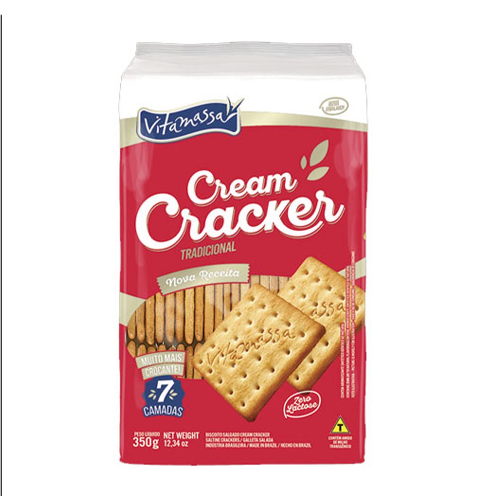 Biscoito cream cracker Vitamassa tradicional Disponível em embalagens de 350g. Biscoito cream cracker tradicional.