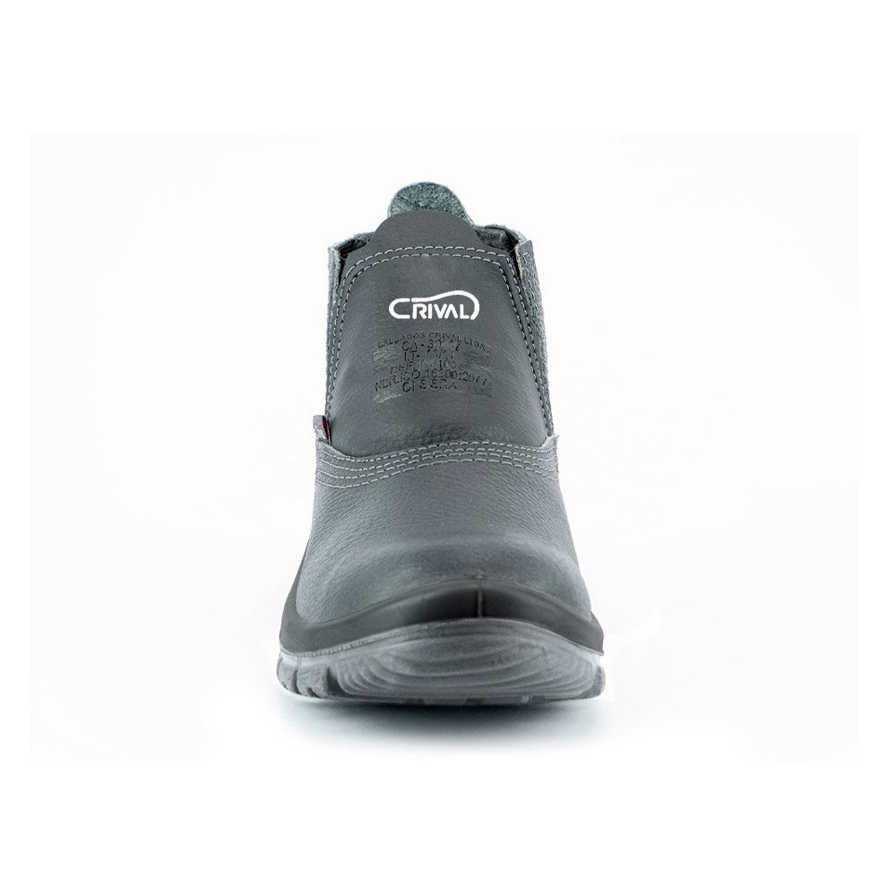 A Botina Crival é produzida em couro com solado constituído de duas camadas de poliuretano (PU) expandido Bi-densidade, injetado diretamente no cabedal, possui característica antiderrapante.