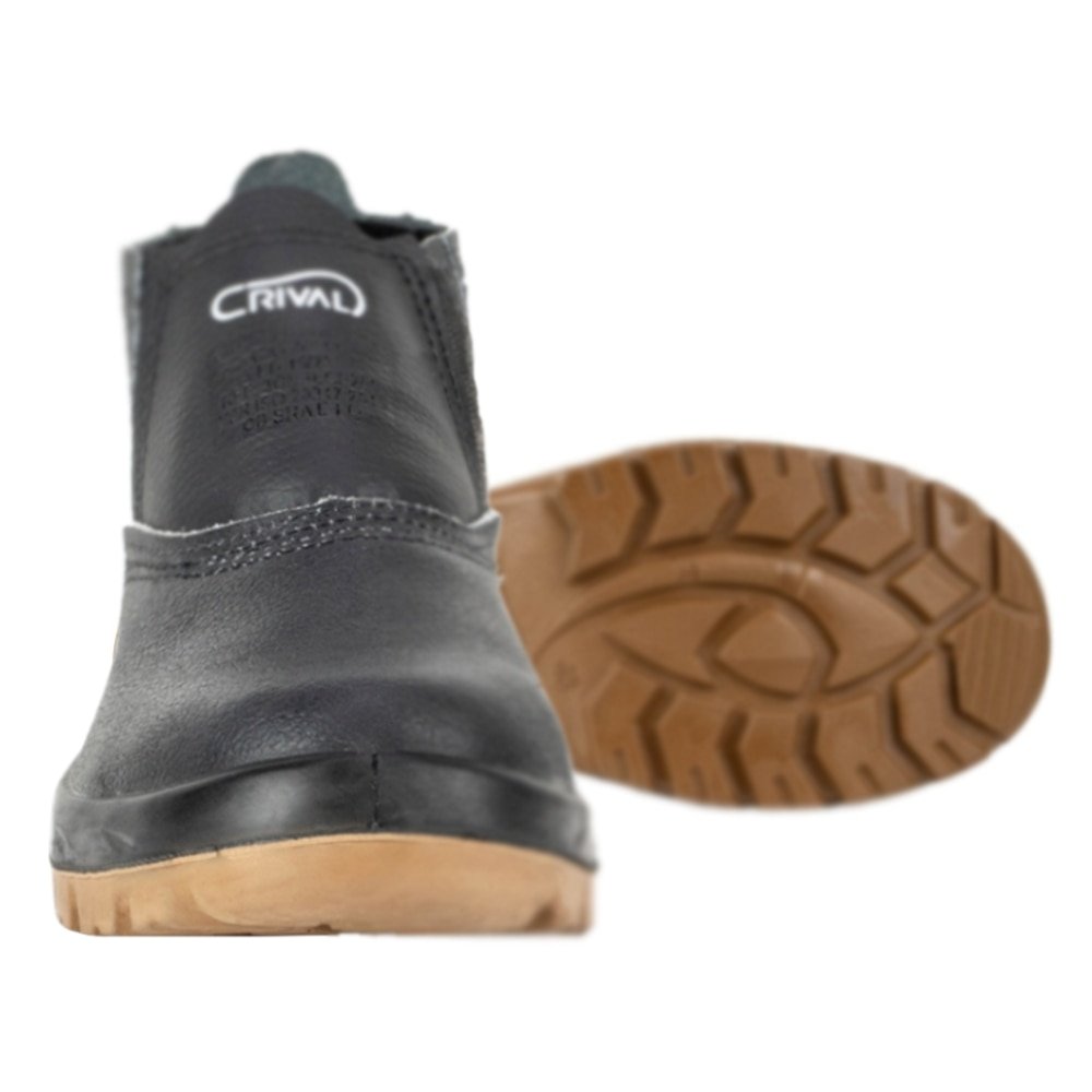 A Botina produzida em couro com solado constituído de duas camadas de poliuretano (PU) expandido Bi-densidade, injetado diretamente no cabedal, possui característica antiderrapante.