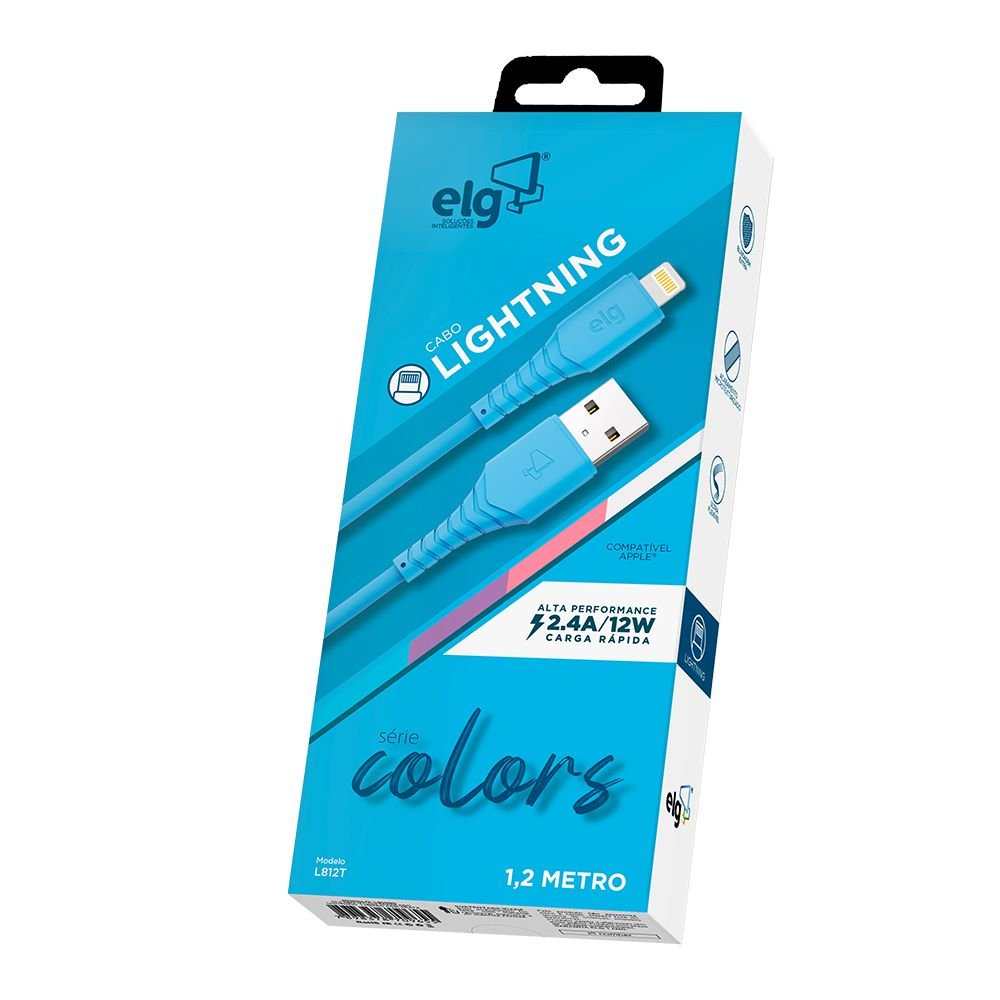 Cabo 2.4A Apple Lightning 8 Pinos Emborrachado - 1,2 Metro - Azul - ELG