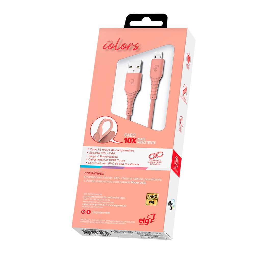 Cabo 2.4A Micro USB Emborrachado - 1,2 Metro - Salmao - ELG