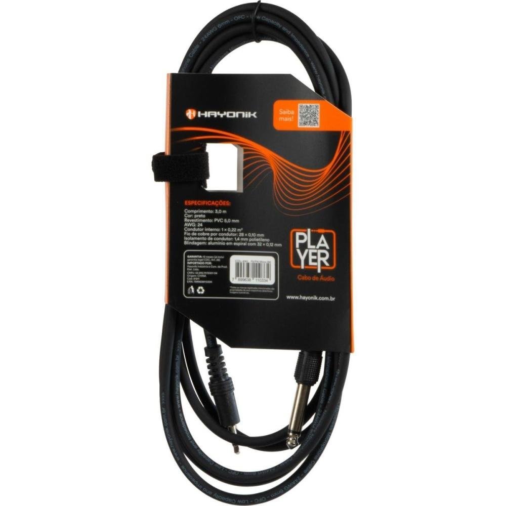 Cabo de Áudio Player P2 x P10 3m Preto Hayonik