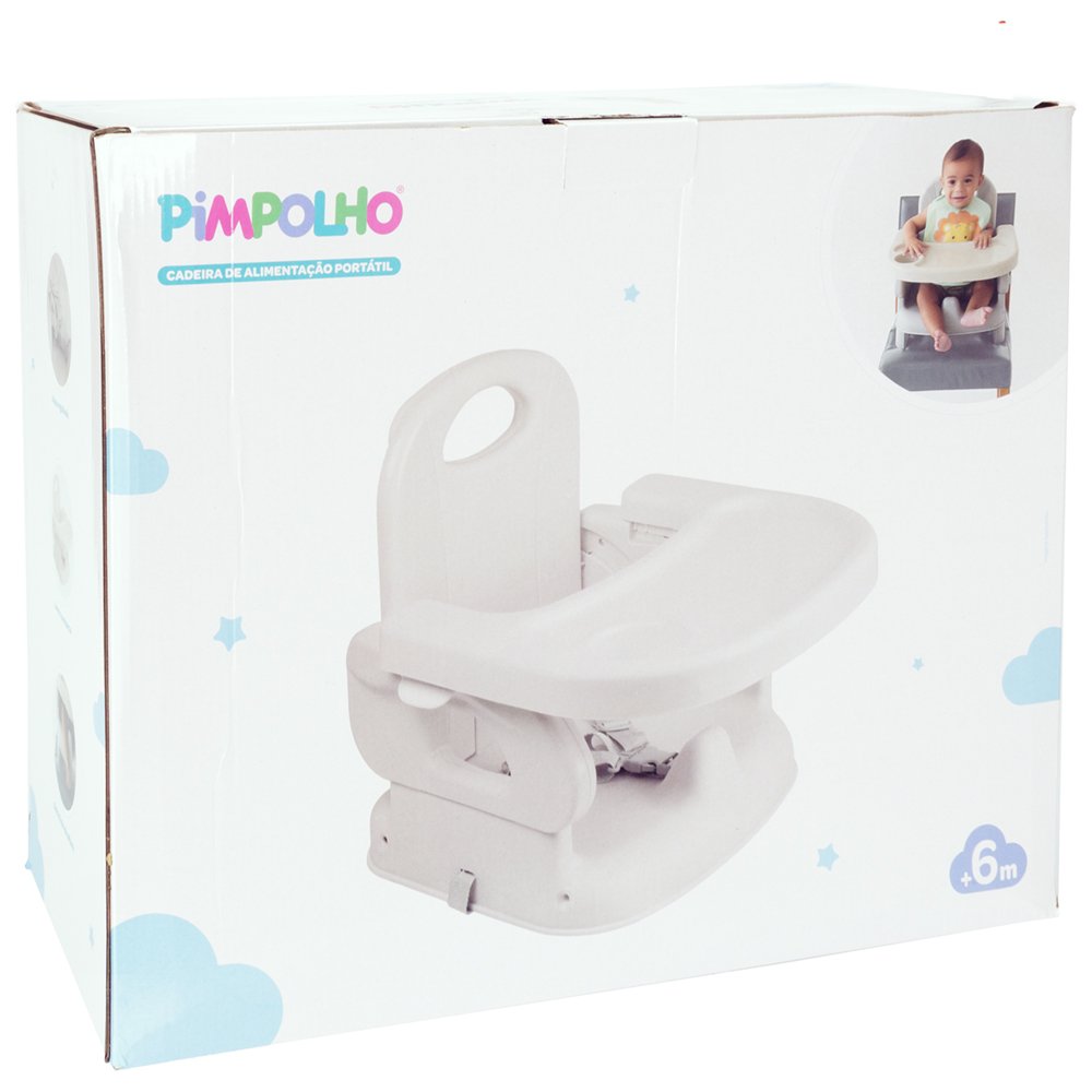 A cadeira de alimentação da Pimpolho proporciona praticidade e segurança na introdução alimentar. É portátil, possui mesa removível que facilita a limpeza e o posicionamento do bebê na cadeira. As tiras reguláveis no encosto e no assento ajudam a fixar o produto na cadeira de adulto, o bebê fica seguro com os cintos também reguláveis. Possui ajuste de altura além de ser dobrável e compacta para o transporte. Indicado para bebês de 6 a 24 meses até 15KG. Largura interna do assento: 26,5 CM; Altura do encosto: 32 CM. Caixa com 1 unidade na cor cinza.