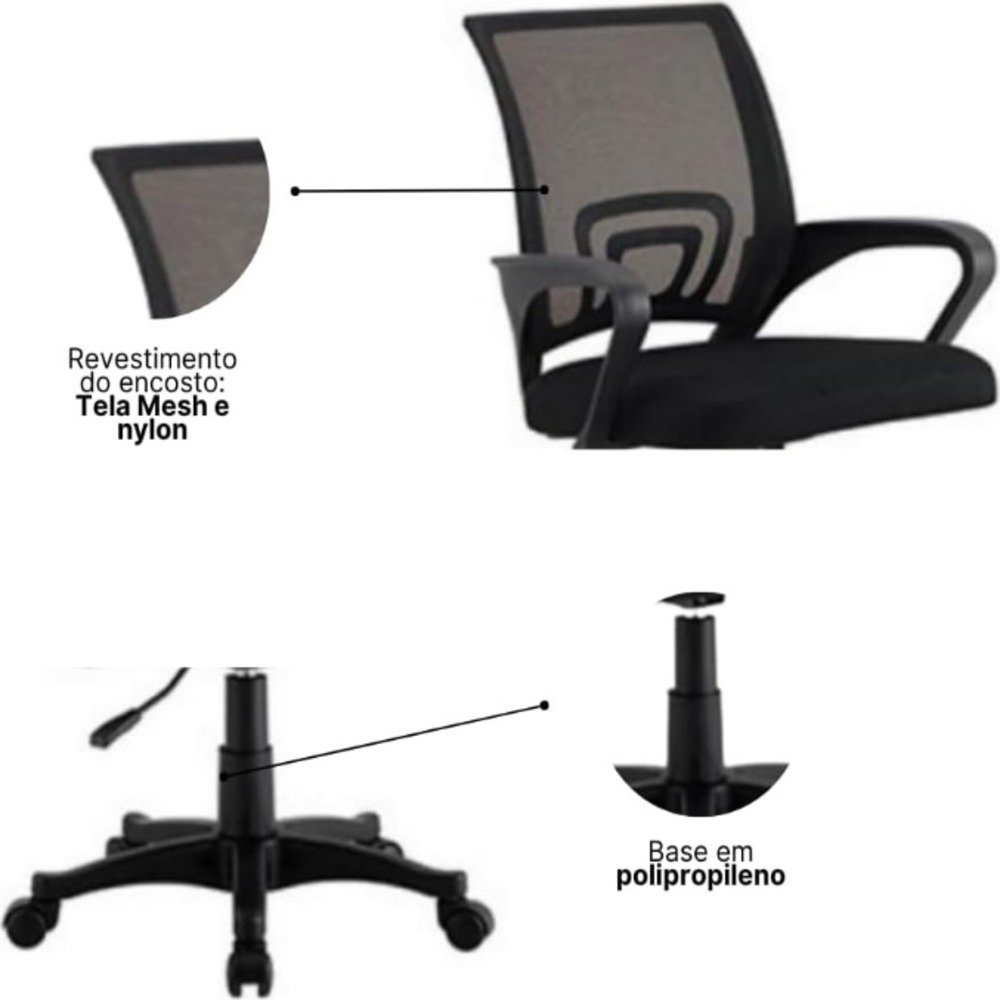 - Encosto em tela mesh para ventilação e conforto térmico