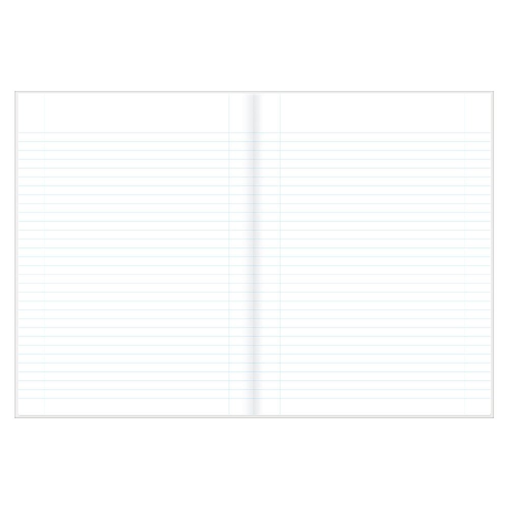Modelo de caderno brochura com capa dura e folhas pautadas.
