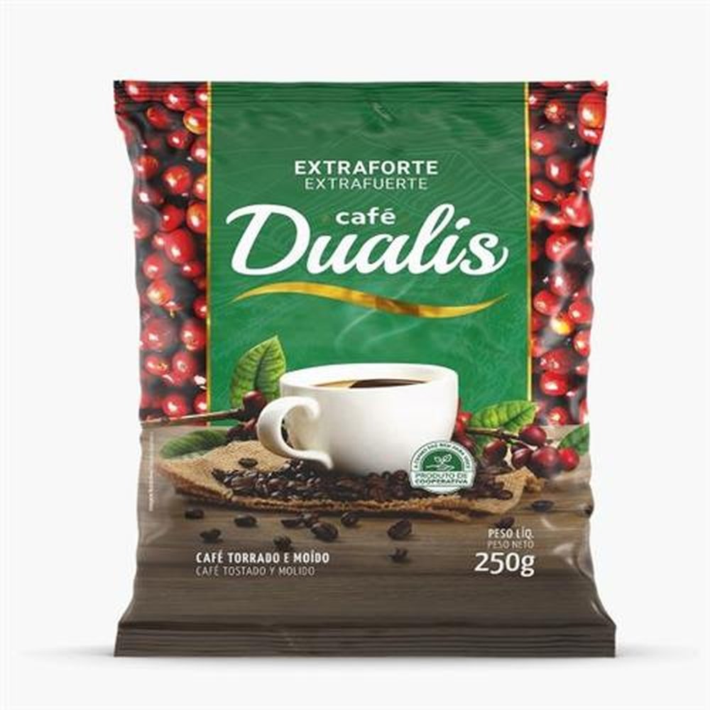 Café Dualis Extraforte é originado de grãos selecionados, com torra moderadamente escura , resultado em um café equilibrado, de sabor marcante e aroma intenso.