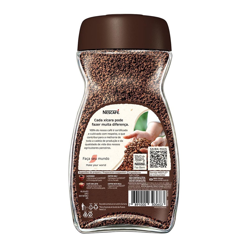 Modo de Conservação: Devido ao seu processo de fabricação, o NESCAFÉ® preserva o sabor e o aroma do café fresco por muito mais tempo. Para isso, mantenha o frasco bem fechado em lugar fresco e seco.