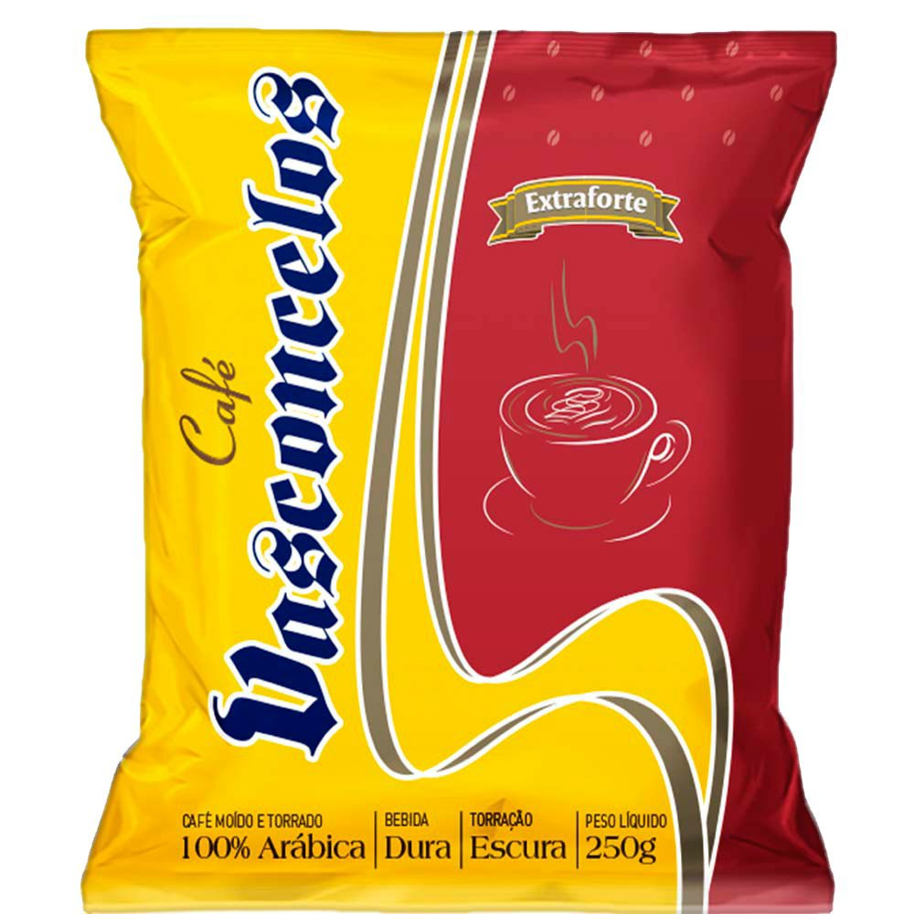 Café Vasconcelos Almofada Extraforte. Peso Líquido 250g. Café Moído e Torrado. 100% Arábica. Bebida Dura. Torração Escura.