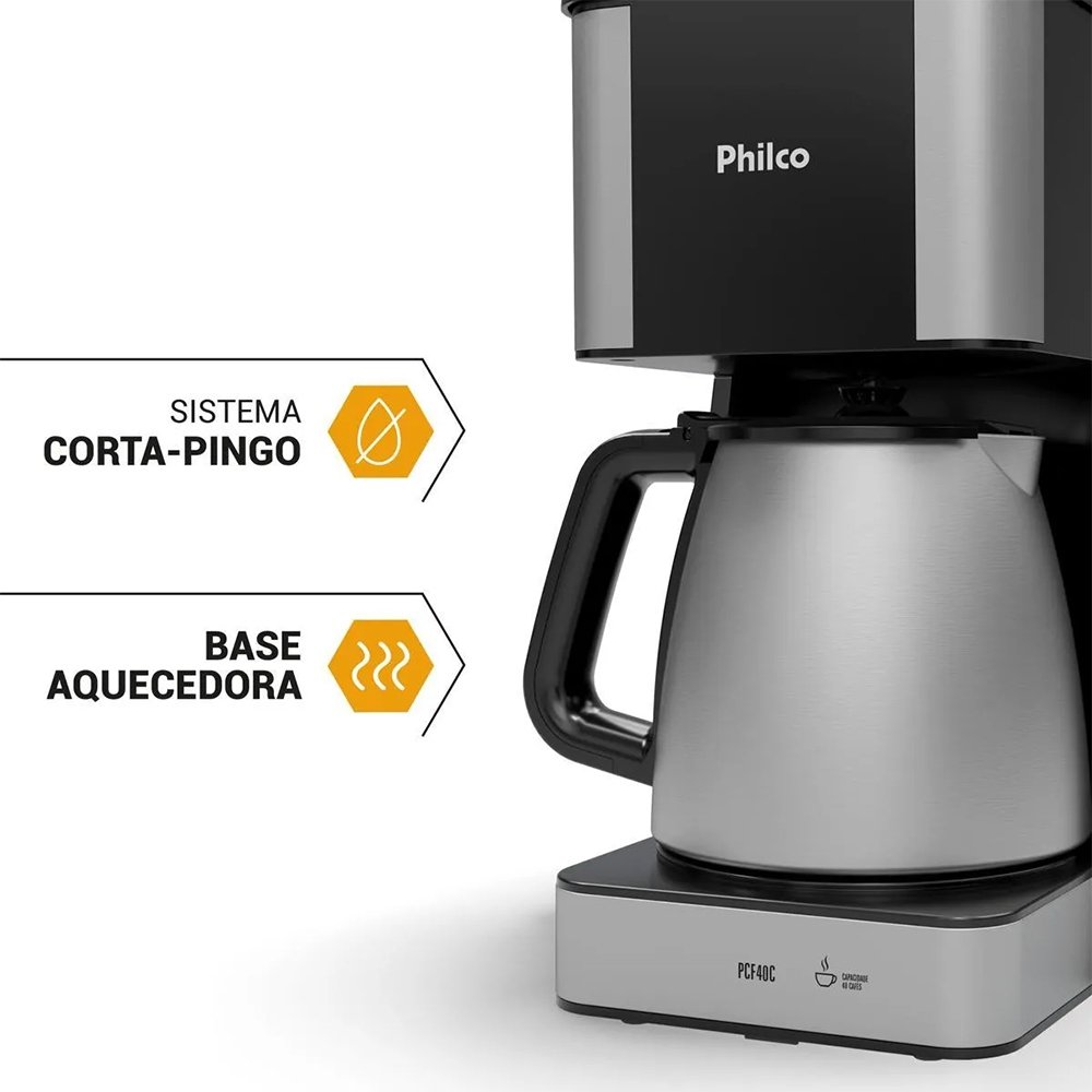 Cafeteira Elétrica Philco PCF40C - 40 Cafés, Jarra em Inox, Preto, 110V