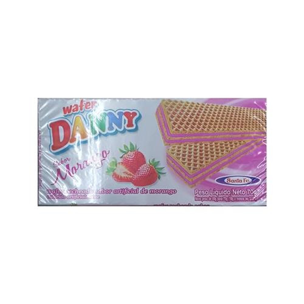 Caixa De Biscoito Wafer Danny Sabor Morango Com 50 Unidades De 70g