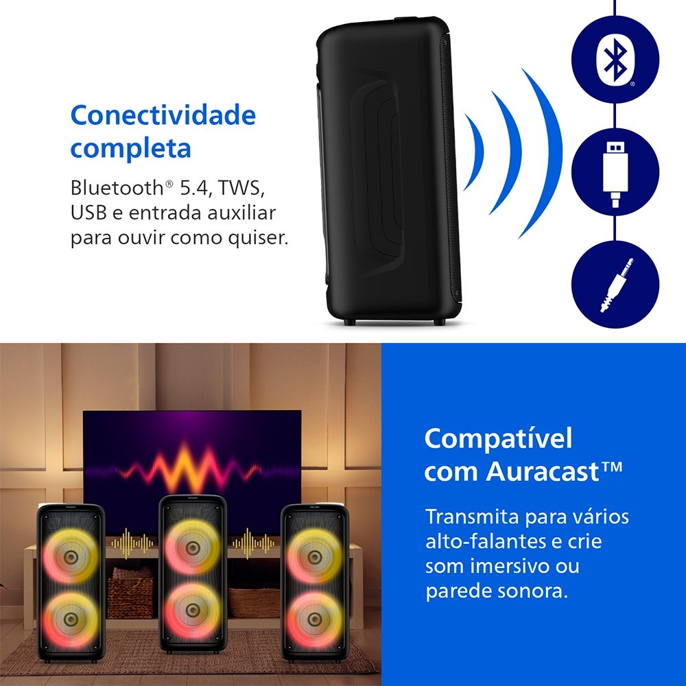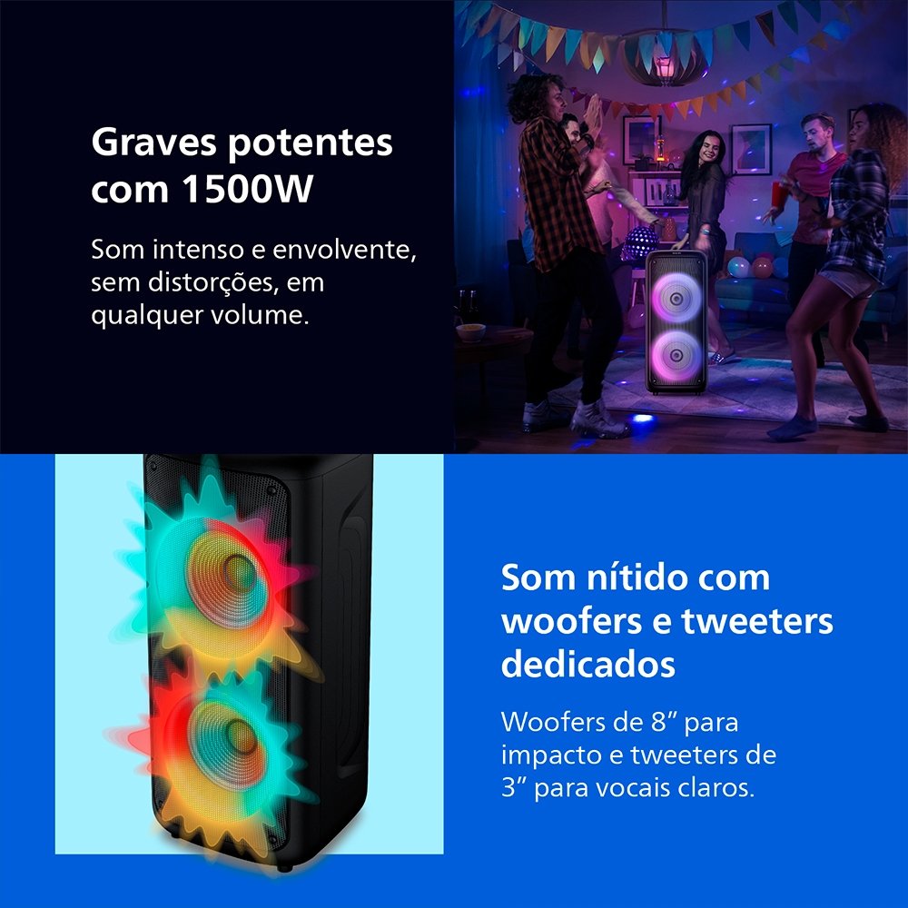 Caixa Som Bluetooth Philips Party Speaker - TAX4000/78, Bluetooth 6.0 + USB Type-A, 1500W, Preto