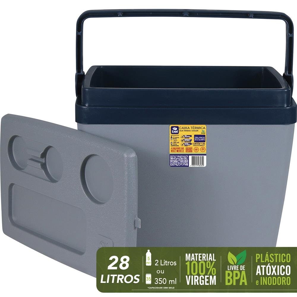 Caixa Térmica 28 Litros Bel - Frescor e Conveniência para Grandes Momentos! A Caixa Térmica 28 Litros da Bel é a solução perfeita para quem adora curtir dias na praia, acampamentos, churrascos ou reuniões familiares. Com alta capacidade e design funcional, ela oferece o equilíbrio ideal entre praticidade e desempenho térmico. Por que escolher a Caixa Térmica 28 Litros Bel? ¿¿ Ampla Capacidade: comporta até 5 garrafas PET de 2L ou 35 latinhas de 350ml (sem gelo), ideal para encontros em grupo.