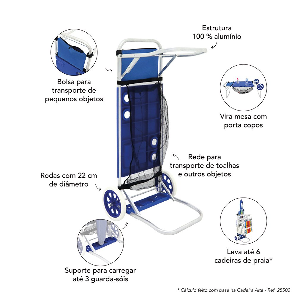 Ideal para levar e trazer suas cadeiras e guarda-sois
