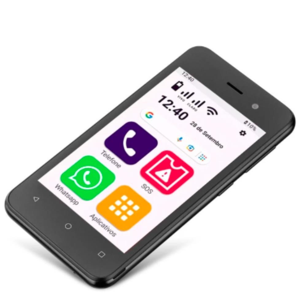 Celular do idoso com Internet e WhatsApp 32GB 3G Wi-Fi Tela 4 polegadas Dual Chip 1GB ram Android 10 (Go edition) Processador Quad Core Preto - OB055 Conecte-se com sua família no dia a dia de forma descomplicada e aproveite momentos especiais juntos. O Celular do idoso com Internet e WhatsApp oferece um sistema simples e muito fácil de usar. A solução exclusiva para facilitar o acesso à tecnologia: - Função sos para situações de emergência - Botão DiscaFácil para ligações rápidas com apenas um toque - Curso on-line para você aprender sobre o mundo digital - Cores e contrastes adequados para você enxergar melhor Principais aplicativos já instalados: WhatsApp, Facebook, Instagram e Uber. Acompanha acessórios: película protetora, capinha antiqueda e fone de ouvido. Tire fotos com a câmera do Celular do idoso com Internet e WhatsApp e guarde no espaço de 32GB. Se desejar, poderá expandir a memória para ter mais espaço, em até 64GB com um cartão MicroSD (não incluído). Combinação perfeita do sistema operacional Android 10 Go Edition + processador Quad-Core e conectividade 3G para uma navegação fluida. Dual Chip: tenha a liberdade de utilizar dois números diferentes em um só celular, escolhendo qual deles utilizar para suas ligações. Ficha Técnica Marca: Multi Modelo: Celular do idoso com Internet e WhatsApp 32GB OB055 Memória ram: 1 gb Memória interna: 32 gb Memória expansível: por cartão MicroSD até 64 gb (não incluído) Rede: 3G Cor: Preto Conexões: Wi-fi, usb, Bluetooth e gps Tela: 4.0 polegadas fwvga Sistema operacional: Android 10 Go Edition Processador: Quad-Core (4x1.3GHz) Câmera frontal e traseira: 2 mp Bateria: 1.500 mAh Rádio fm: sim Dual Chip: Slot 1 Micro Sim, Slot 2 Nano Sim Dimensões (LxAxC): 6,5 x 1 x 12,4 cm Peso: 110 g Leitura Digital: Não Conteúdo da embalagem: 1 Celular do idoso com Internet e WhatsApp, 1 cabo usb, 1 carregador, 1 fone de ouvido, 1 manual de instruções, 1 guia rápido, 1 capa protetora e 1 película protetora Garantia: 1 Ano Produto Homologado pela Anatel. *Imagens meramente ilustrativas. *