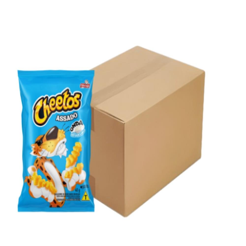 Caixa com 56 unidades de 40g de cheetos onda requeijão.