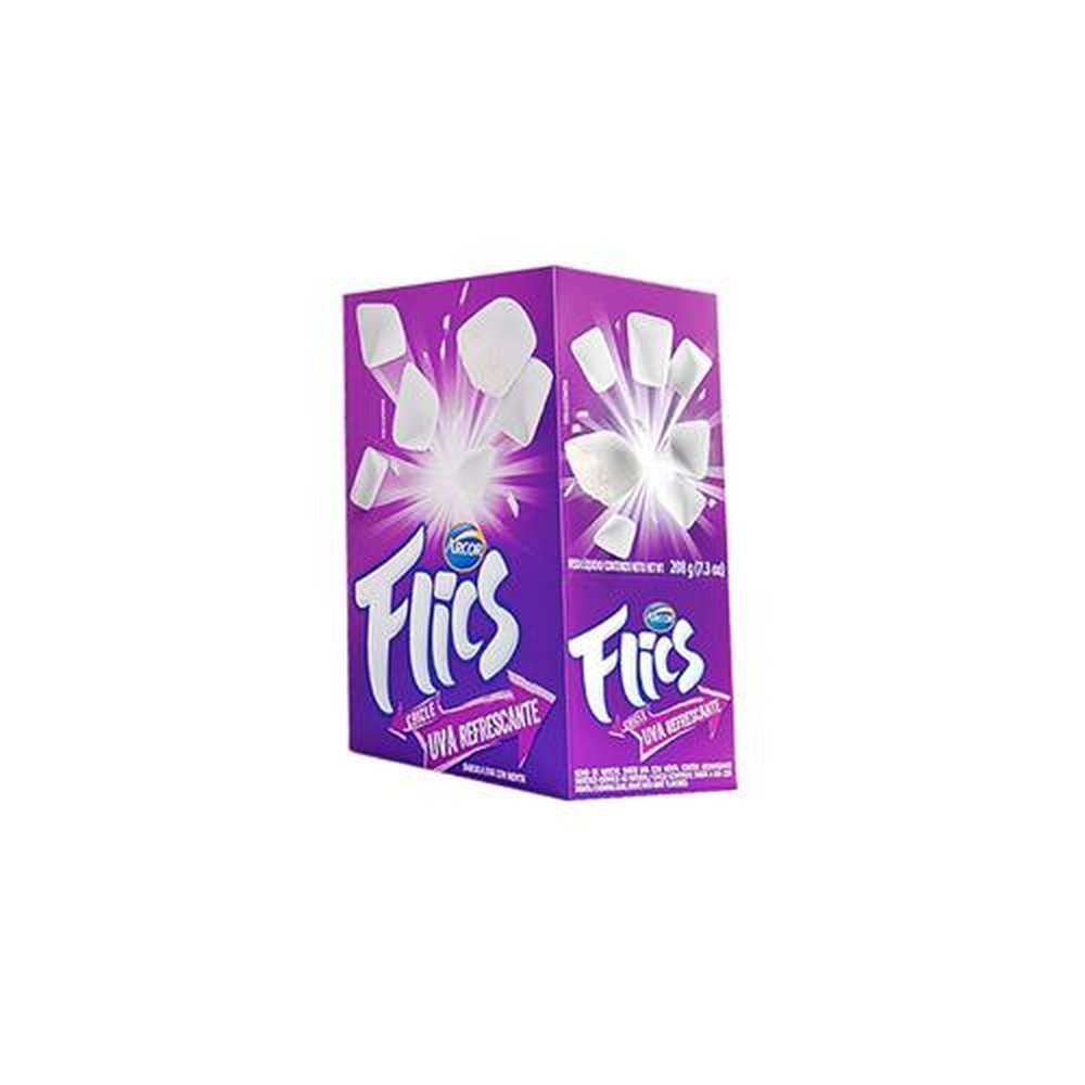 O chicle Flics tem sabor de Uva, é refrescante e fácil de levar para qualquer lugar. Display com 12 blisters.