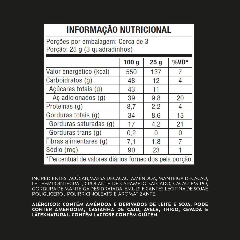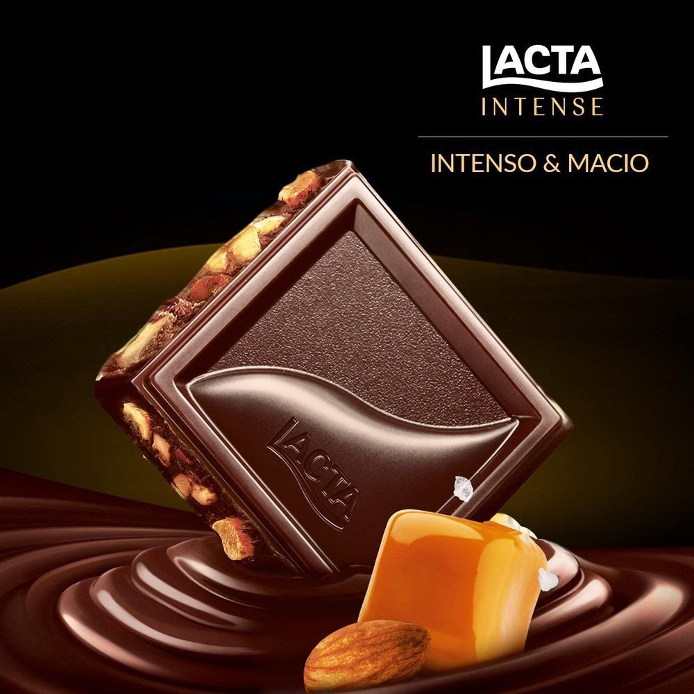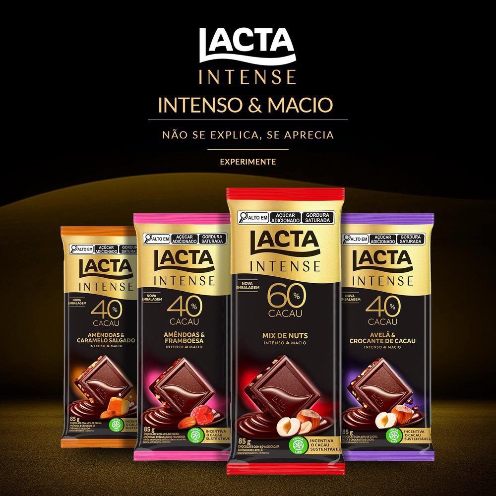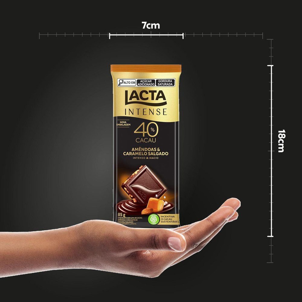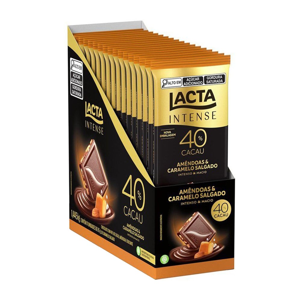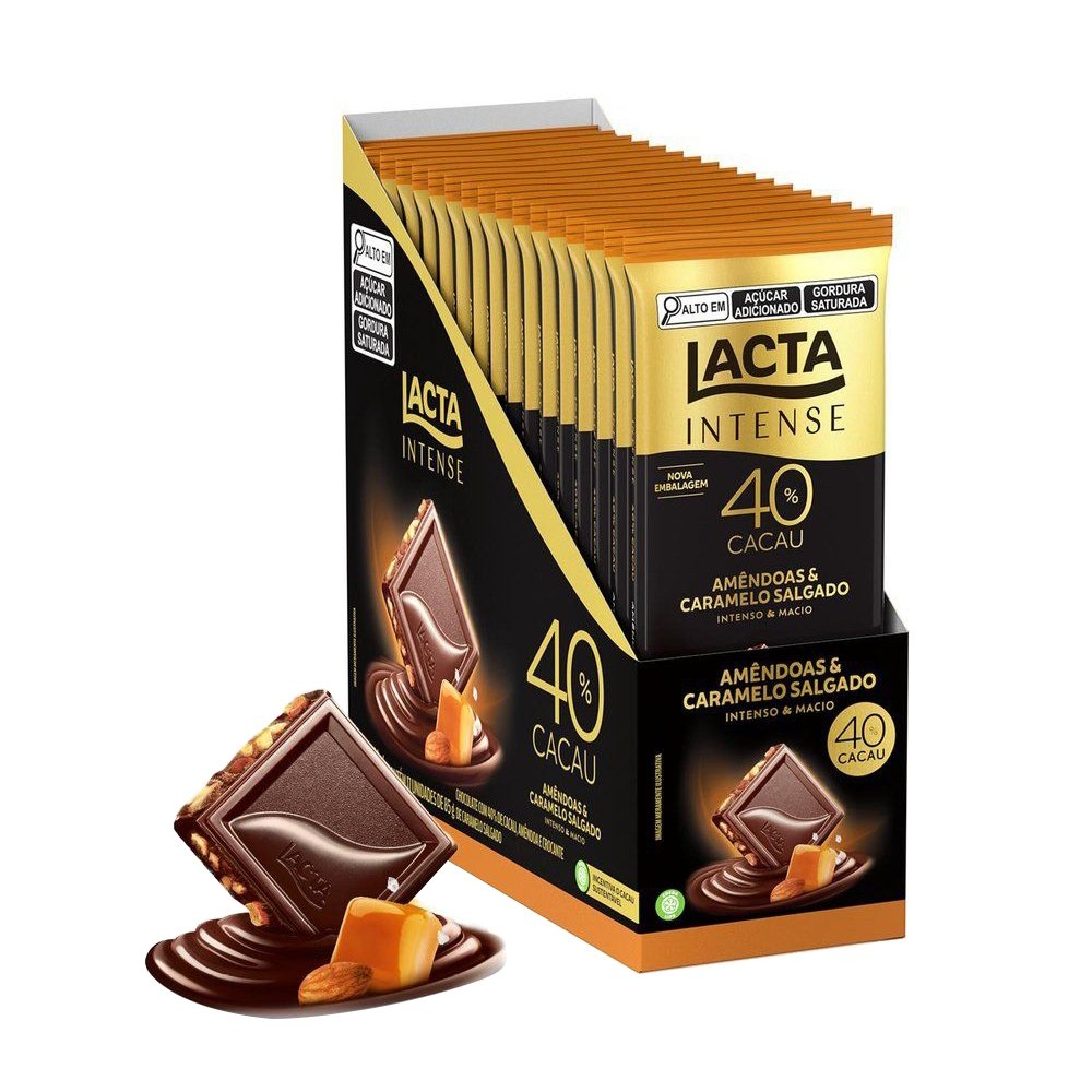 Chocolate Lacta Intense Meio Amargo 40% Cacau Amêndoas e Caramelo Salgado 85g - Display com 17 Unidades