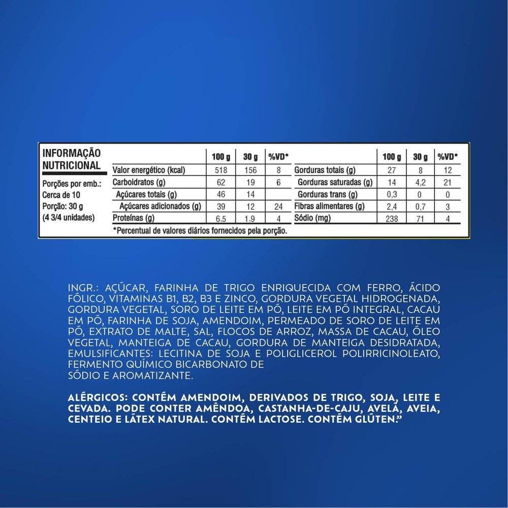 soro de leite em pó, leite em pó integral, cacau em pó, farinha de soja, amendoim, permeado de soro de leite em pó, extrato de malte, sal, flocos de