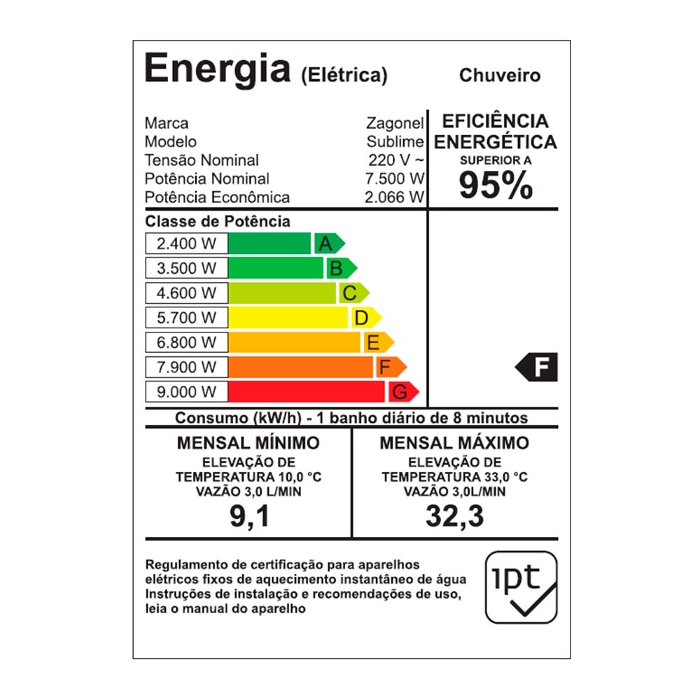 Chuveiro Ducha Zagonel Sublime Black Eletrônica 220v 7500w
