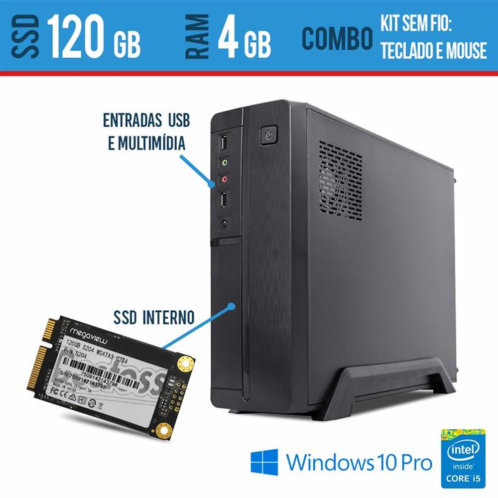 Computador Desktop Slim Intel i5 4GB SSD 120 teclado e Mouse sem fio Windows Pro
