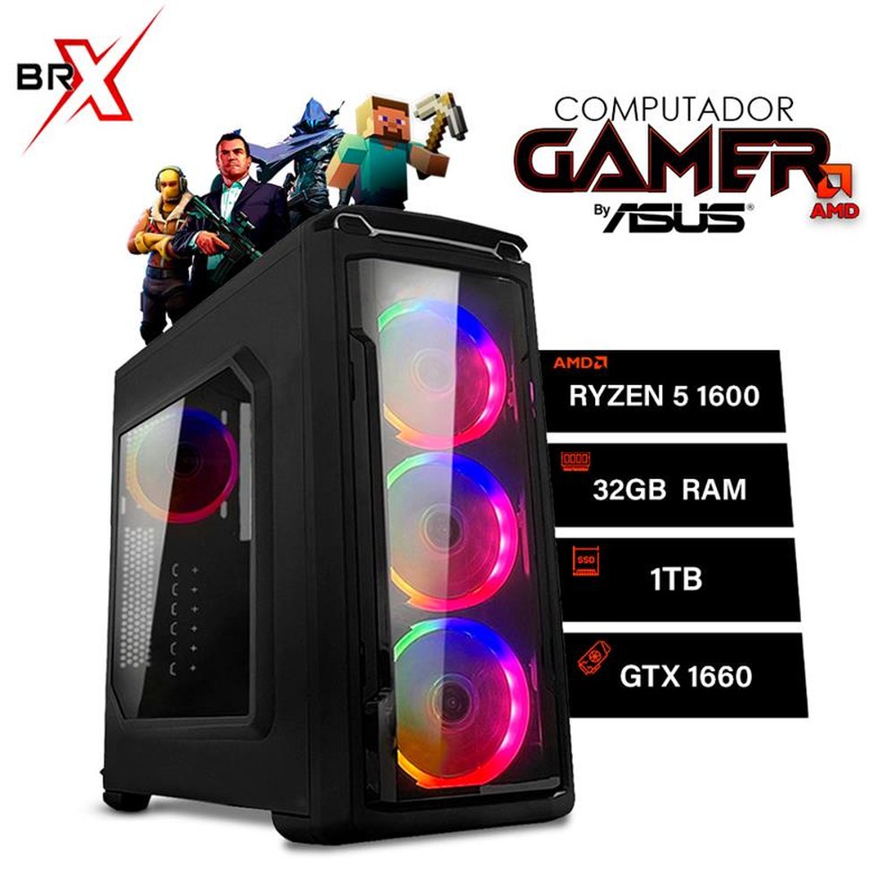 Computador Gamer AMD Ryzen 5 1600 By Asus 32GB 1TB Vídeo GTX 1660 6GB Windows 10 - BRX