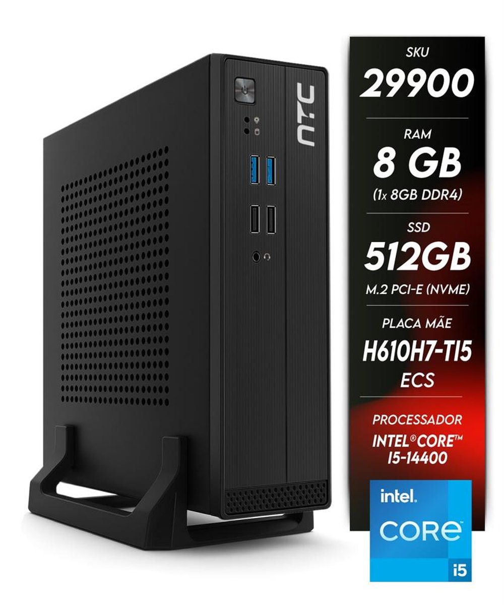 Computador Ntc Mini Itx Ii Intel - 8110 Ec (I5-14400/8Gb/Ssd512nvme/H610h7/8Usb/Hdmi/Vga)