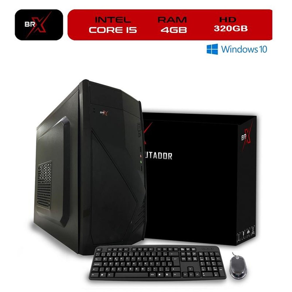 Computador PC Intel Core i5 650 4GB 320GB Windows 10 + Teclado e Mouse - BRX, combina tecnologia com praticidade, ideal para trabalho, estudo, assistir vídeos e jogos. Para que você tenha um produto com ótimo custo-benefício.Ficha técnica:Processador Intel Core i5 650 de 3.46 GHz cache 4MbSistema Operacional - Windows 10 ProMemória Ram 4GB expansível até 16GBHD de 320GBFonte de 220WConexões:- 01 Rede 10/100/1000- 02 x PS2- 01 x VGA- 01 x HDMI- 04 x USB 2.0- 01 x USB 3.0- 03 x Áudio (entrada/saída/microfone) - 01 x RJ45Conteúdo da embalagem:01 Computador BRX01 Teclado01 Mouse01 manual de instruções01 cd de driversDimensões do produto ¿ AxLxP - 315x170x345mmPeso do produto ¿ 4.50KgGarantia:01 ano de garantia, sendo de (9 meses de garantia contratual junto ao fabricante + 3 meses referentes à garantia legal, nos termos do artigo 26, II, do Código de Defesa do Consumidor)