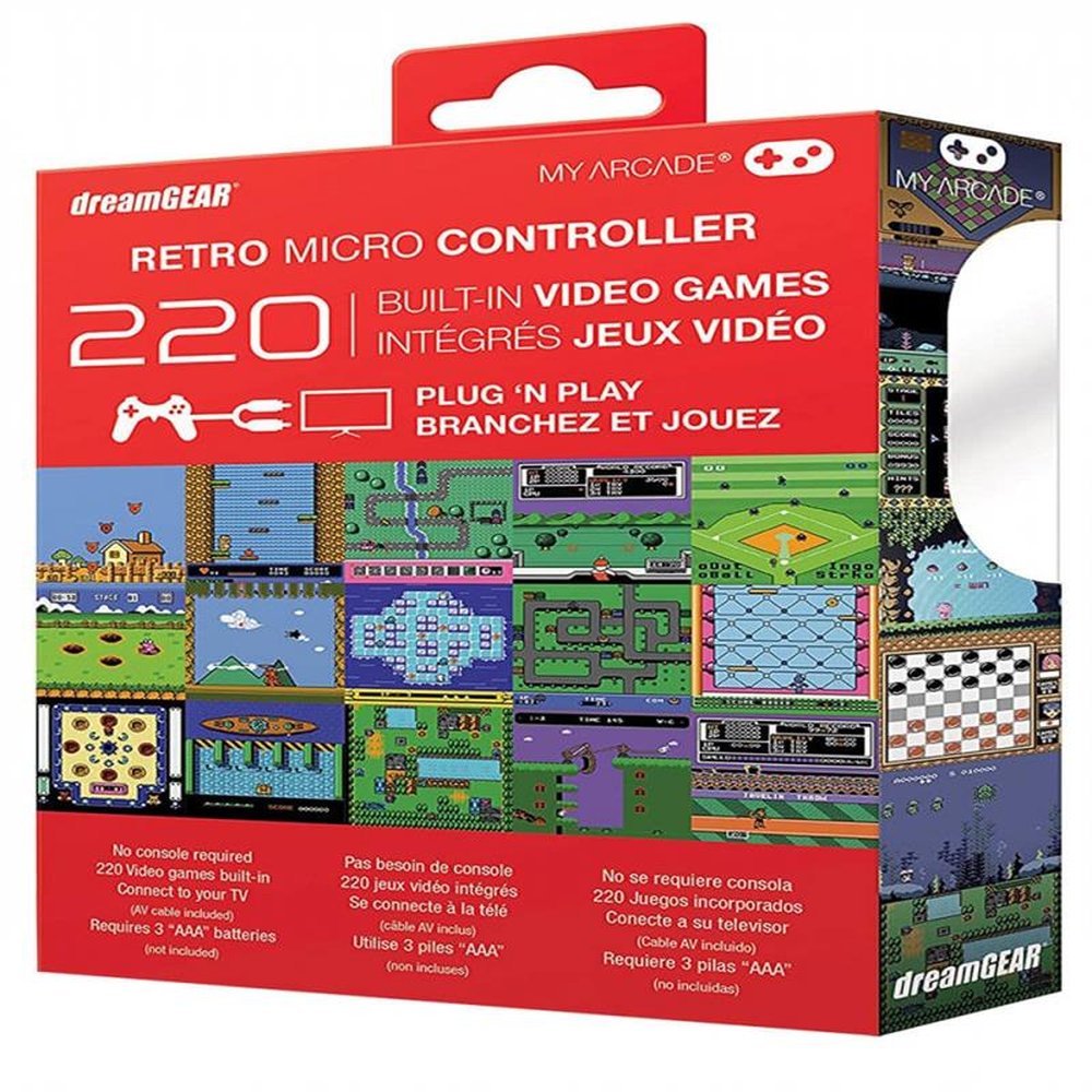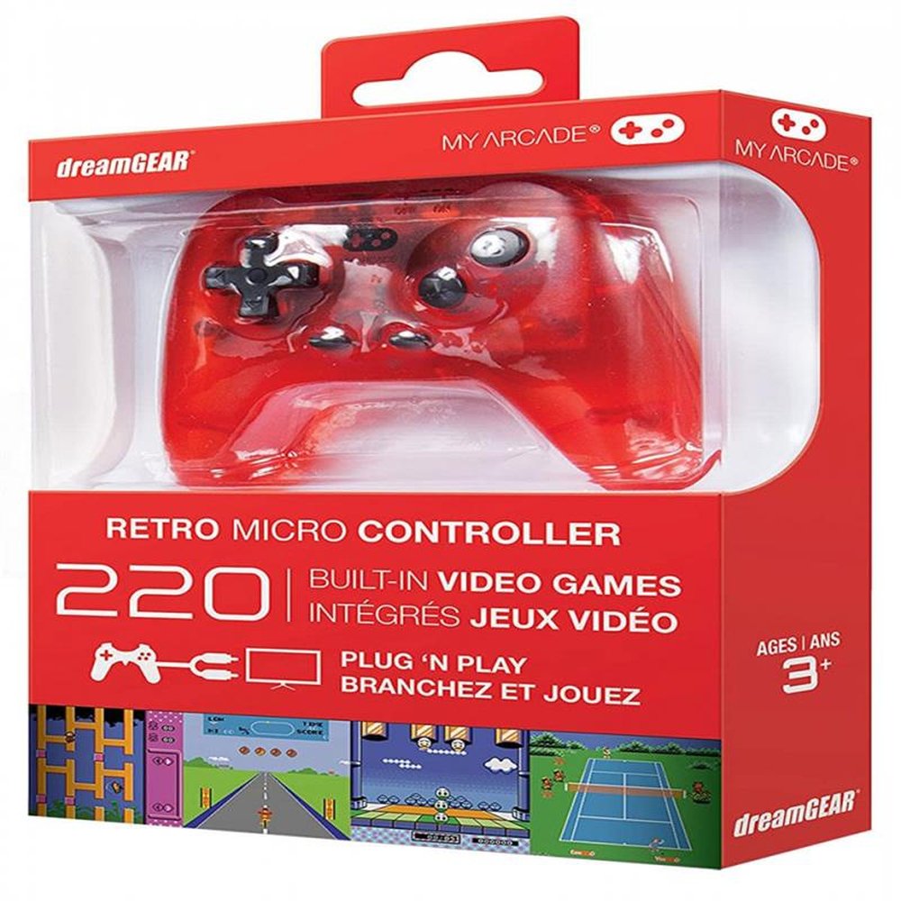 - Sistema de jogo Retro Micro Controller Plug 'N Play - Controle manual de acionamento de comandos de jogos - 220 games integrados prontos para jogar - Leve e portátil pronto para usar - Basta conectar diretamente na sua TV - Diversão na certa por horas a fio - Cabo AV de 1,80 metro - Alimentação: 3 pilhas AAA não fornecidas - Cor: vermelha