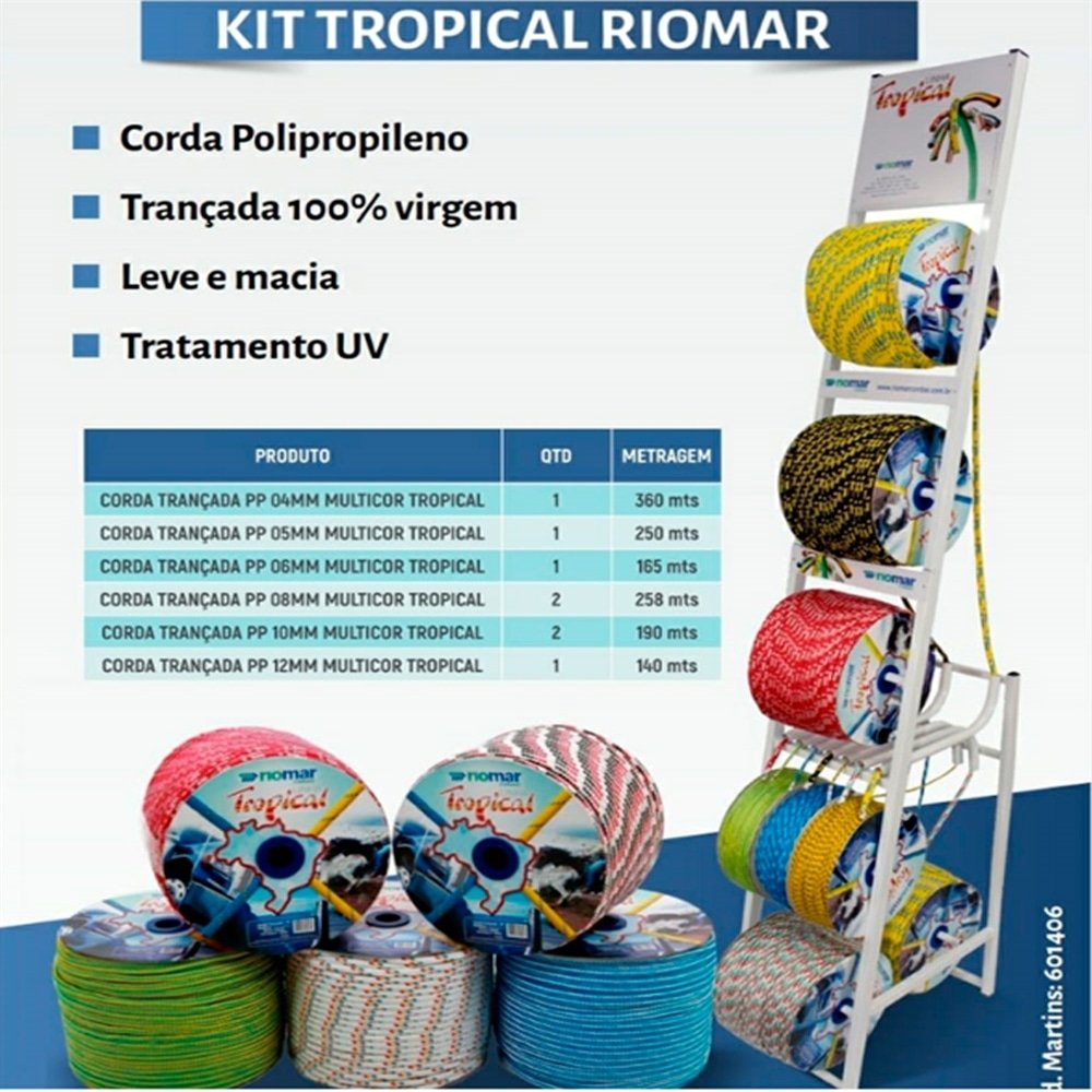 Kit Corda Riomar PP Tropical Multicolor 8 Carreteis 4MM a 12MM + Expositor