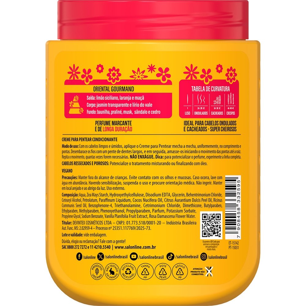 Desembaraça facilmente, proporciona cachos com alta definição, nutrição intensa e controle do frizz